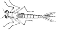 | Metamorphosis Depending on insect order, aquatic insects undergo either incomplete or complete metamorphosis. Incomplete The life stages of insects undergoing incomplete metamorphosis are egg, nymph, and adult. The initial (egg) life stage begins when an adult female oviposits eggs. The egg generally finds its way to the bottom of a body of water, either by gravity or actual placement, where it becomes attached to the substrate and begins a period of growth and development. The length of this period is generally 1-2 weeks. The 2nd (nymphal) life stage begins when the immature nymph escapes its egg, and begins actively feeding and growing. Having the limitation of an external skeleton, which won't accommodate much growth, this exoskeleton must be periodically shed, and another larger one formed. This process is called molting. The period between molts is called an instar. The number of nymphal instars can vary from 8 to 30 (or more) for different insect orders. The nymphal period can vary from several months to as long as 2 or 3 years for some large aquatic insects. The 3rd (adult) life stage commences with a mature larva transforming into a winged adult form. The exception to this is mayflies, which first transform into a winged (sexually-immature) adult form called a dun (subimago), and shortly thereafter transform into a winged (sexually-mature) adult form called a spinner (imago). Among aquatic insects sharing incomplete metamorphosis are mayflies, damselflies, dragonflies, stoneflies, and waterbugs. Complete Metamorphosis The life stages of insects undergoing complete metamorphosis are egg, larva, pupa, and adult. The initial (egg) life stage is the same as described above under incomplete metamorphosis. The 2nd (larval) life stage begins when the immature larva escapes its egg, and begins actively feeding and growing. Larvae undergo the same molting process as described for nymphs. The number of larval instars can vary from 3 to 11 for different insect orders. The nymphal period is a short as a single week for some true fly families, but is as long as a year or more for others .The larva pictured here is of a chironomid, a type of true fly, which doesnt have an obvious head or jointed legs, and looks rather worm-like. However, larvae of most orders (of aquatic insects undergoing complete metamorphosis) do have an obvious head and jointed legs, therefore don't look nearly so worm-like. The 3rd (pupal) life stage begins when the mature larva transforms into a pupa. A terrestrial insect example of pupation is the caterpillar, which seals itself in a cocoon to pupate prior to emerging as a butterfly. The 4th (adult) life stage begins when the pupa undergoes metamorphosis and transforms into a winged adult. Among aquatic insects sharing complete metamorphosis are alderflies, dobsonflies, beetles, moths, caddisflies, and true flies. |
