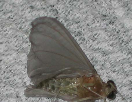Your mayfly is Oligoneuriella rhenana, the only Italian species of family Oligoneuriidae (Bushlegged Mayflies). Here is an