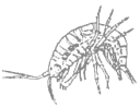 | Freshwater amphipods (commonly called scuds) are extremely abundant in certain lakes. They have 11 body segments, with a pair of ventral appendages on each. They are sometimes referred to as side-swimmers. |